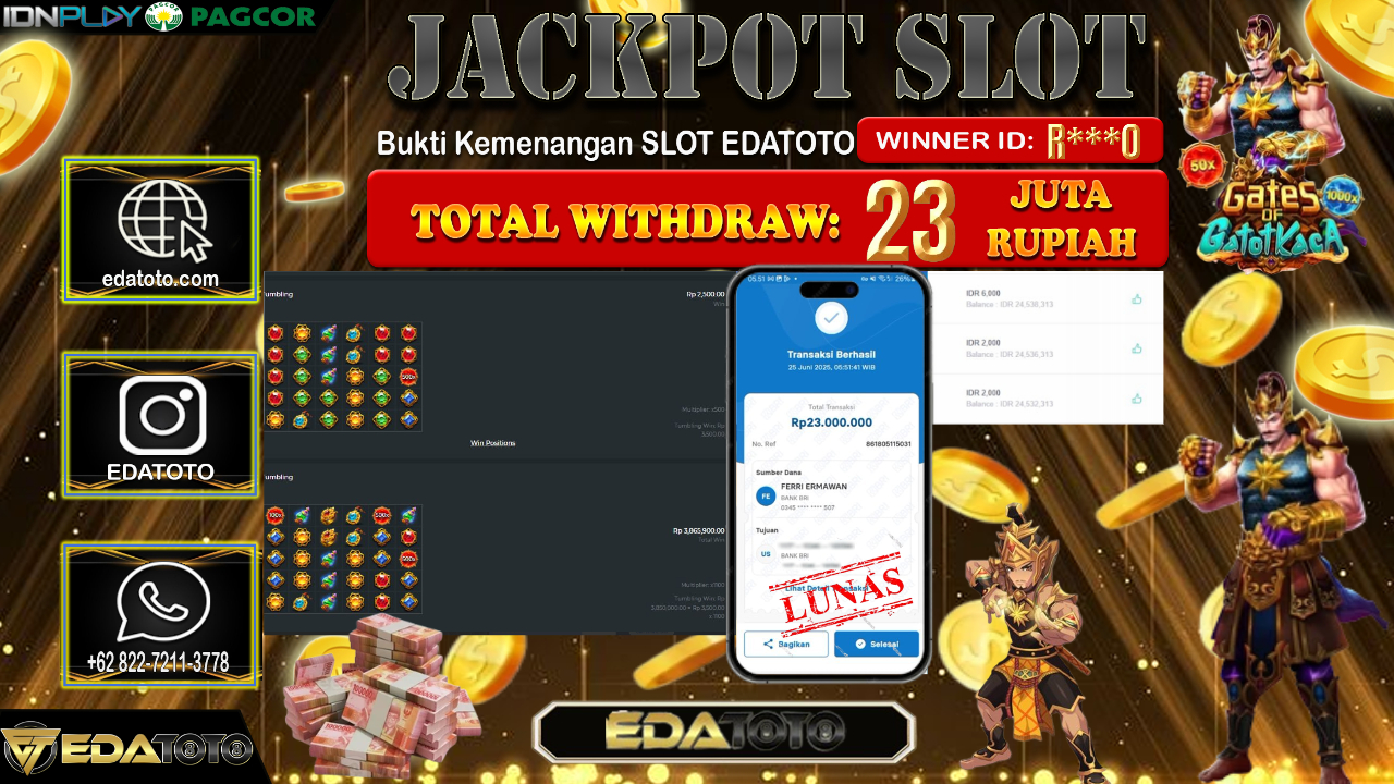 Selamat Kepada Pemilik user ID : R***0 Hari/Tanggal : Kamis/ 26, Juni 2025 Jackpot : Rp. 23.000.000 JT Permainan : Gates . . .